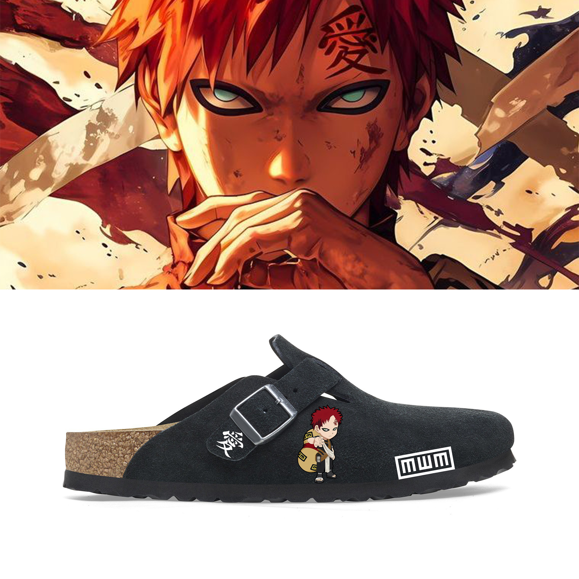 Naruto Gaara Anime Unisex Boston Soft Footbed Suede Leather